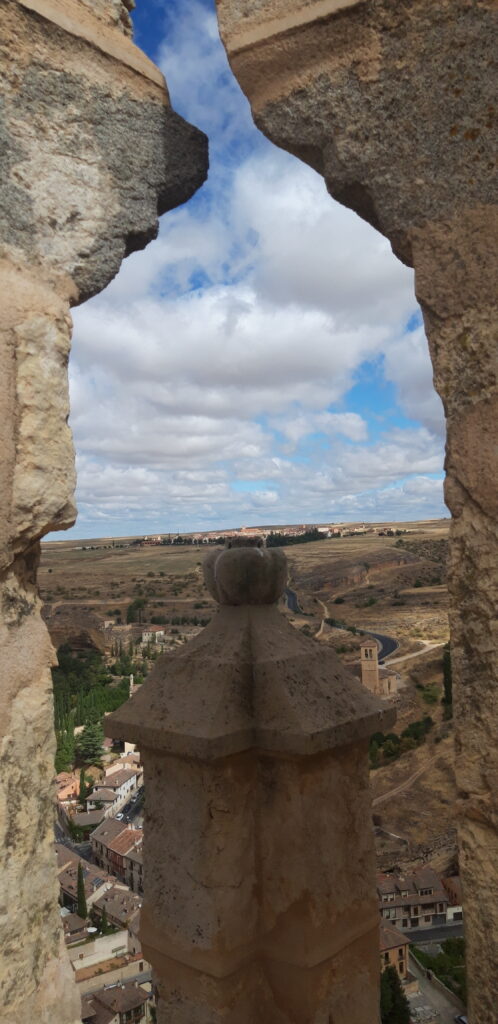 Op mijn weg terug richting aquaduct kijk ik nog een paar keer om. Het sprookjesachtige beeld van het kasteel imponeert. Als Isabel zich toen hier aan een spinnenwiel had geprikt en in een diepe slaap was gevallen, dan had ik haar nu wakker gekust om te vragen hoe ze die tijd aan het hof heeft beleefd. En nog duizend andere vragen gesteld natuurlijk. Ik loop verder met een glimlach, tevreden met mijn ervaringen en gedachten van vandaag en met vastberadenheid om verder te gaan met mijn zoektocht.